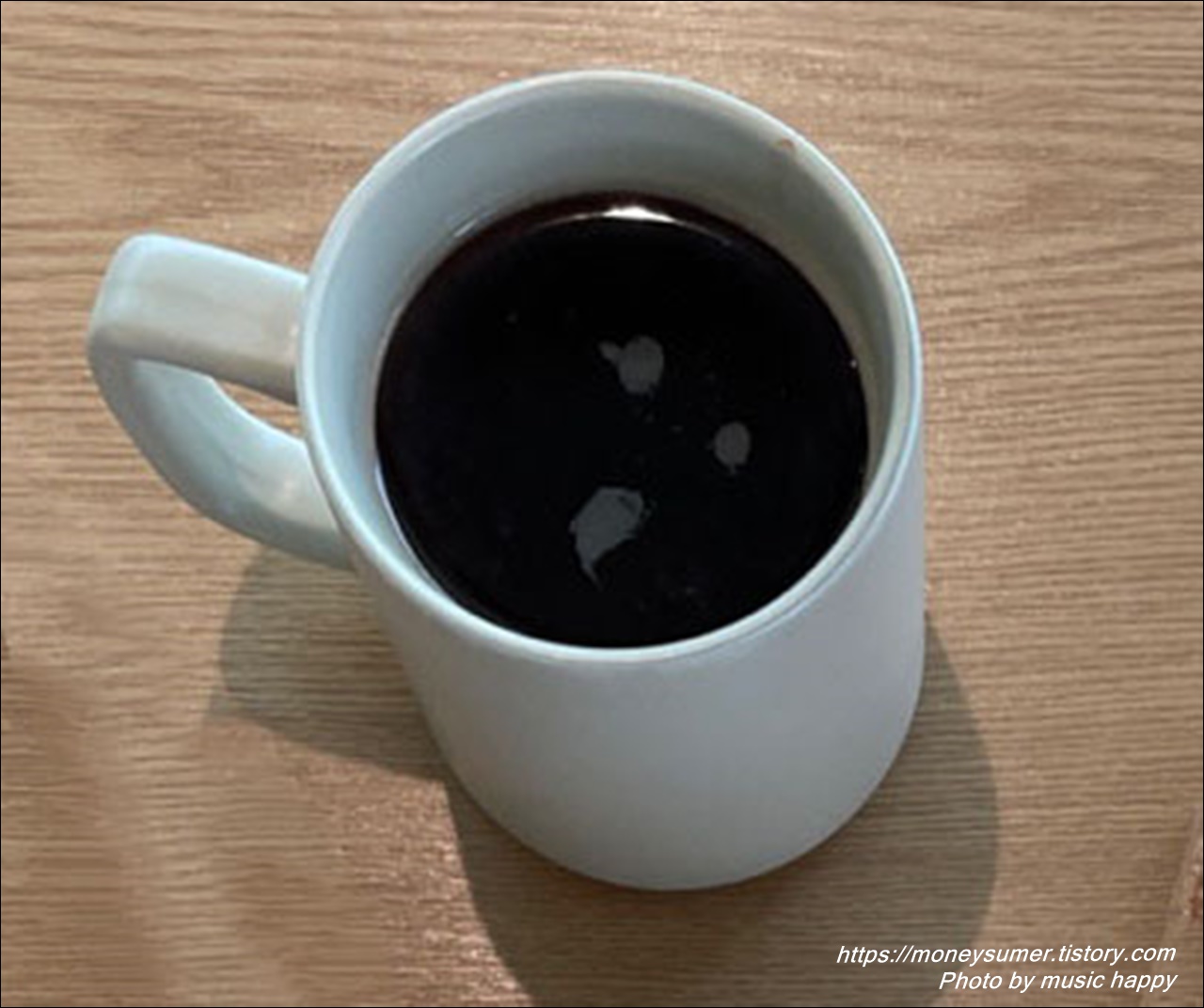 아메리카노(5,000원)는 늘 진한 커피를 마시다 보니 그 맛에 익숙해져서 이런 연한 커피는 맛이 좀 없다고 느껴지더라고요. 연한 커피 좋아하시는 분에게는 좋을 듯해요~