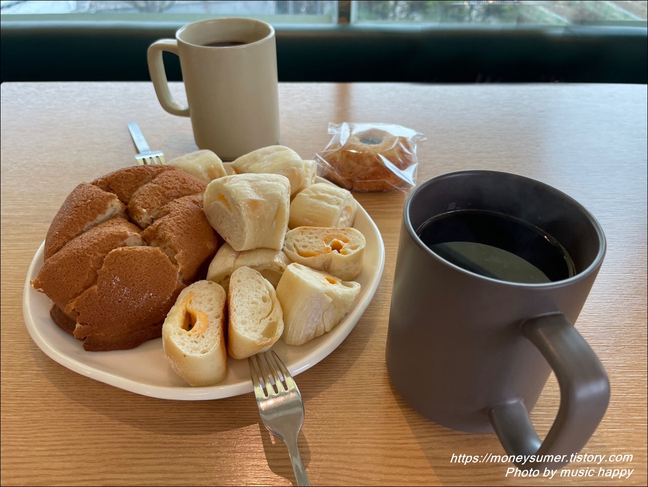 베이커리는 로띠번(3,000원), 치즈&치즈(5,500원), 샤브렝(3,500원)을 주문했어요.
