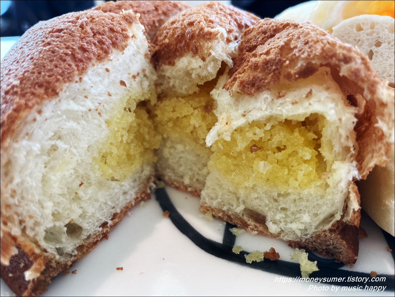 로띠번 안에는 앙꼬가 들어있어 더욱 맛있어요. 겉은 바삭한데 속은 생각보다 촉촉함이 덜해서 아쉽더라고요~
