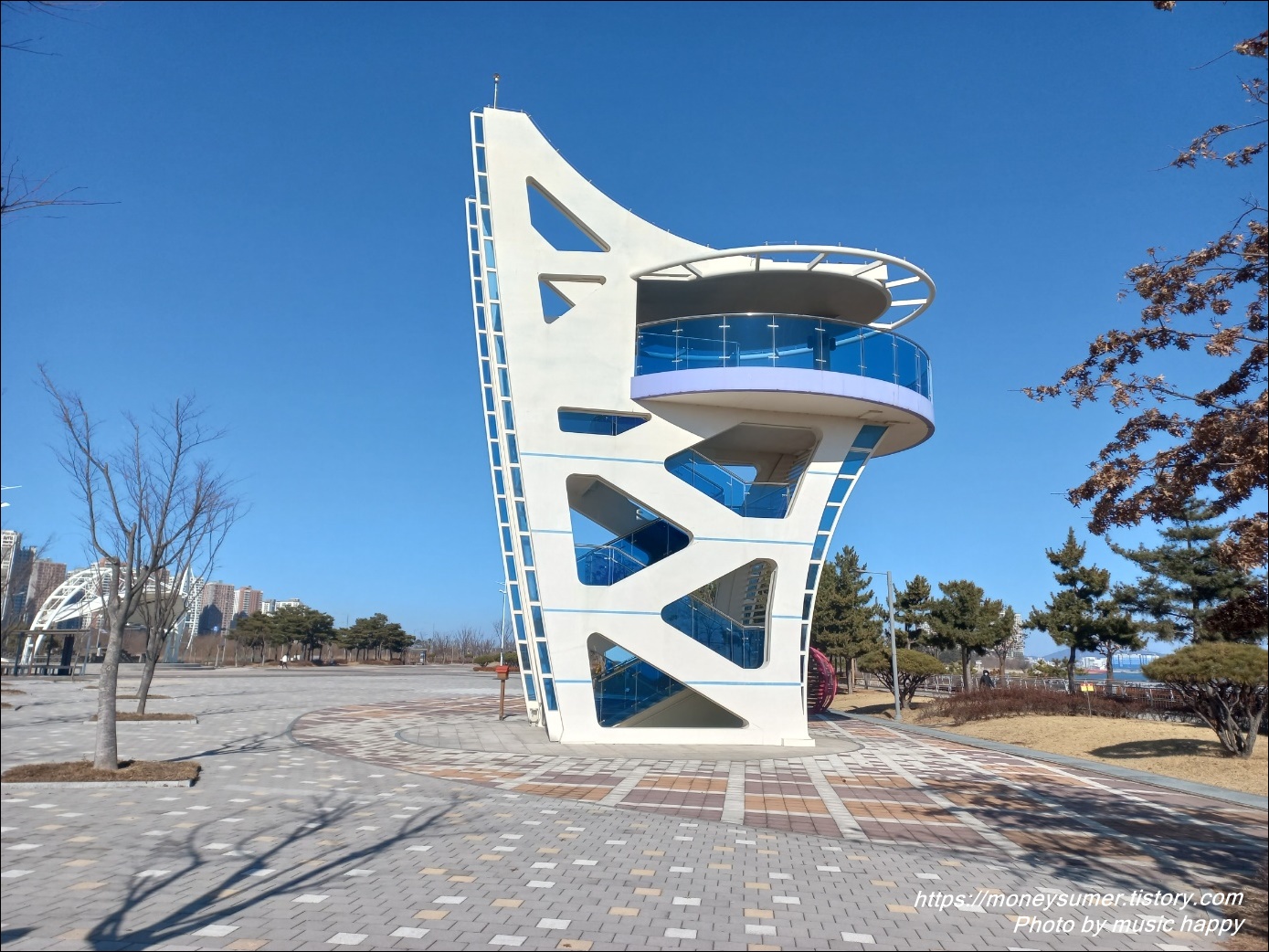 이 건물은 저어새를 형상화한 조형 전망대로 서해바다를 조망하기 위한 광장전망대랍니다.