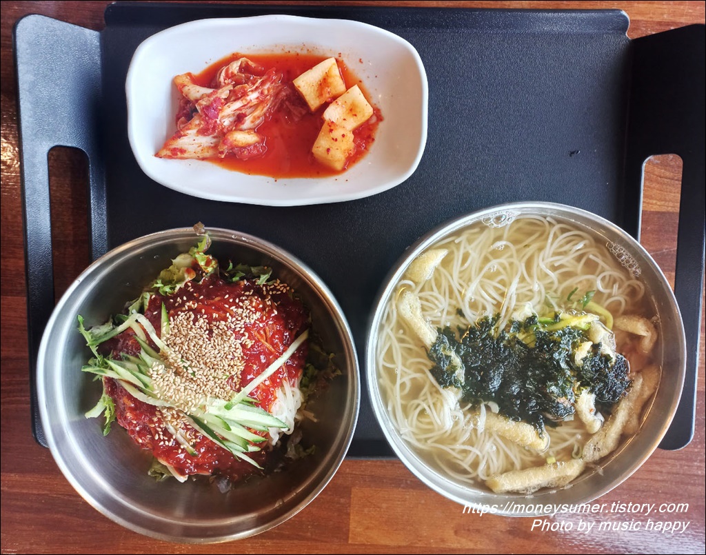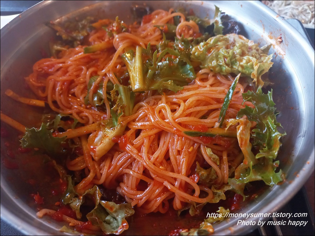 보기에도 먹음직스러워 보이는 비빔국수는 매콤 달콤 상큼하니 정~말 맛있어요!