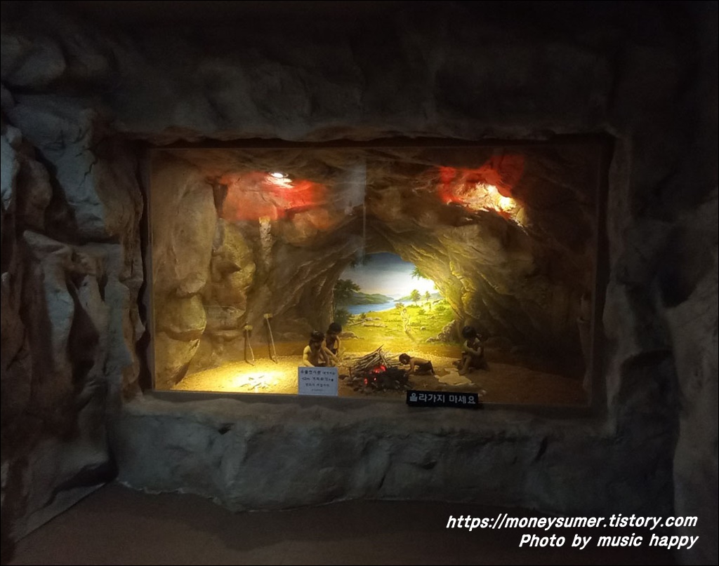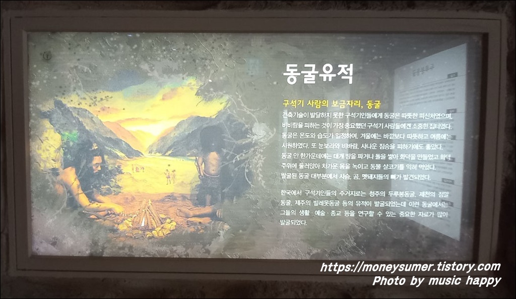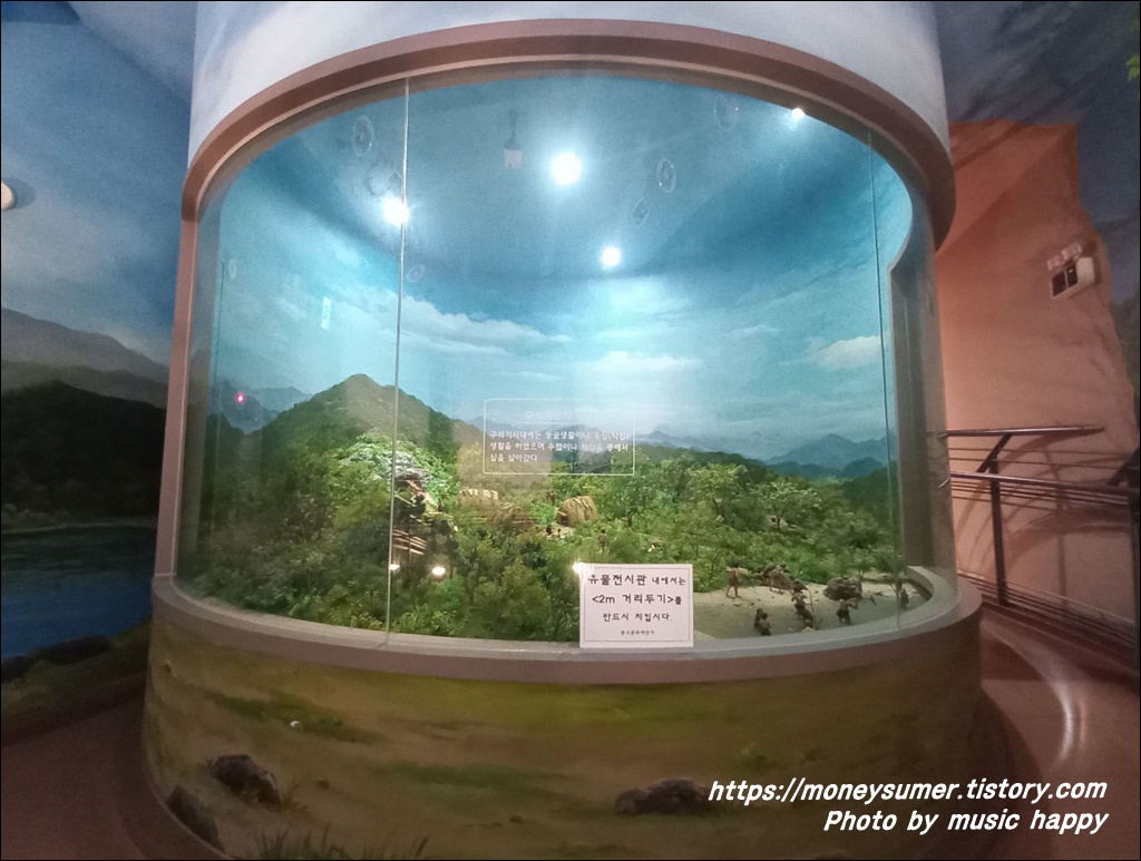 1층에는 유적지소개 및 발굴현황등이 있고 2층에는 구석기인의 일터등이 전시되어 있어요.