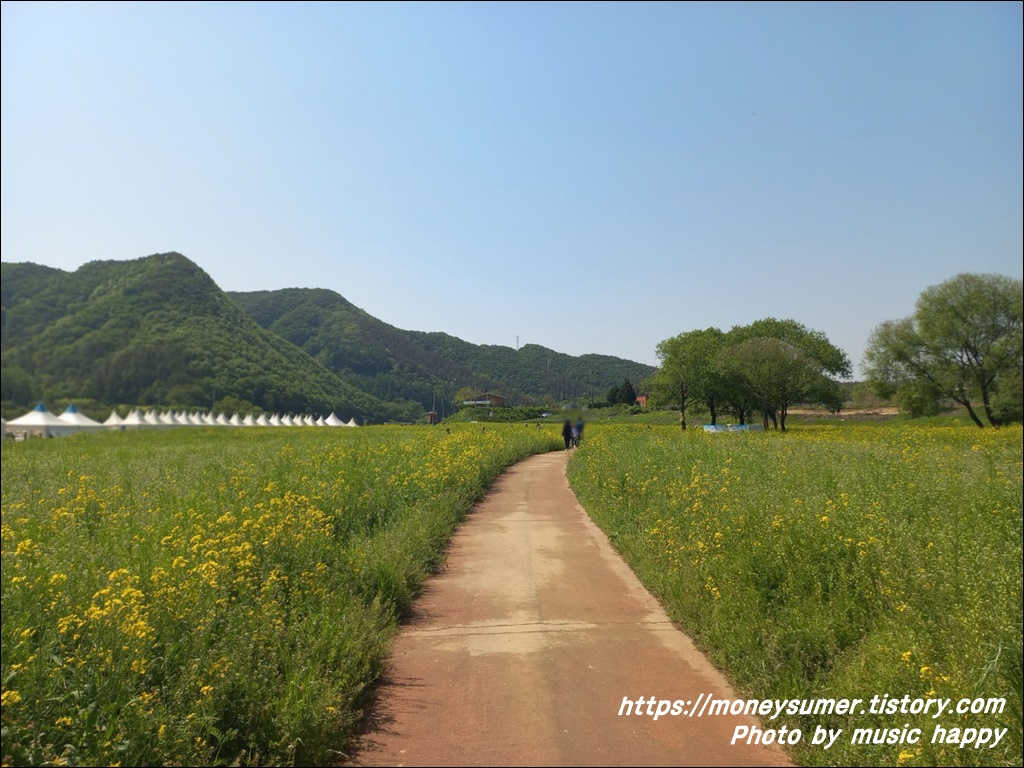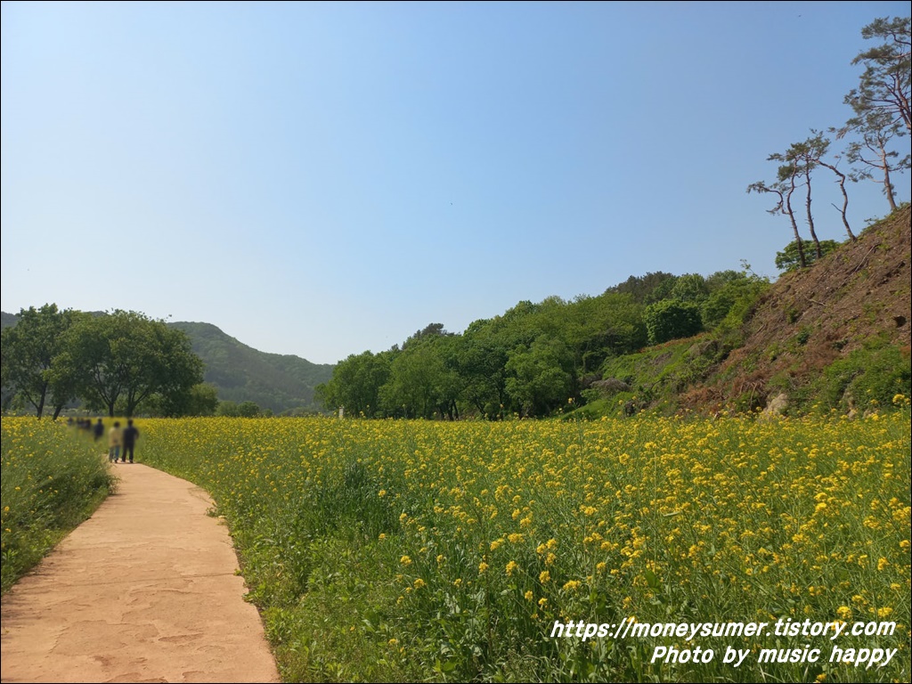 금강수변 친수공원 유채꽃밭은 2만 5천 평의 규모라서 많은 관광객이 와도 큰 불편함 없이 구경할 수 있을 것 같아요~