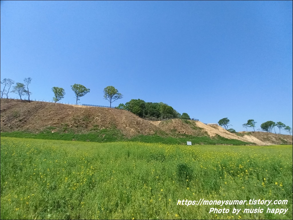 조금 더 일찍 갔다면 온통 노랗게 물들었을 유채꽃 밭이었겠지만 제가 갔을 때는 조금씩 지고 있는 것 같더라고요.