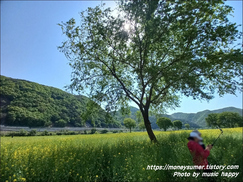 곳곳에 높이 솟아있는 그늘이 되어 주는 나무들도 유채꽃과 잘 어울리고요~