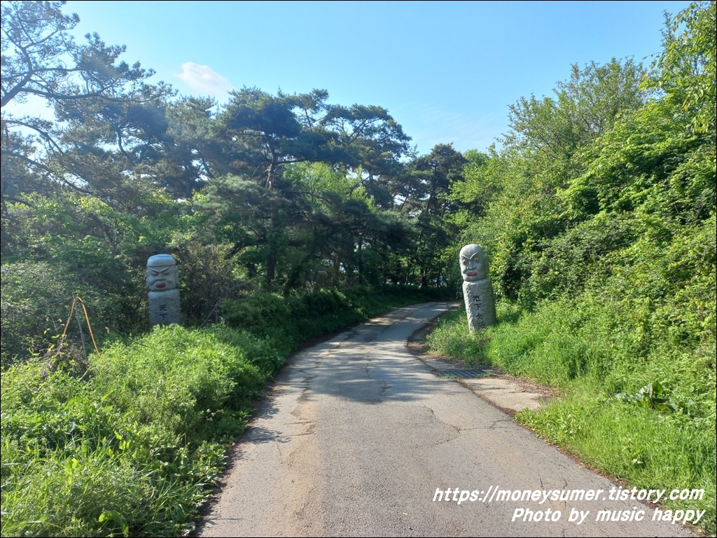 천하대장군과 지하여장군의 석상이 길 양옆으로 세워져 있어요. 좀 무섭게 생겼네요~