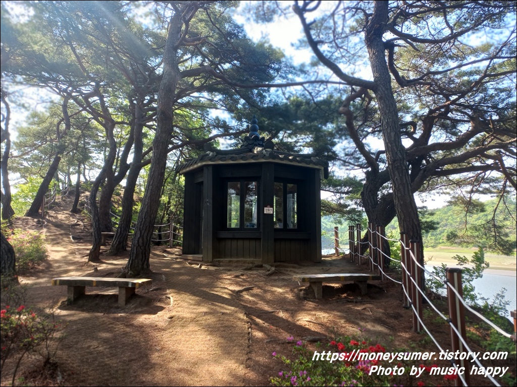 정자 같지 않은 옛정자가 있고 앉아서 쉴 수 있는 벤치도 마련되어 있어요.