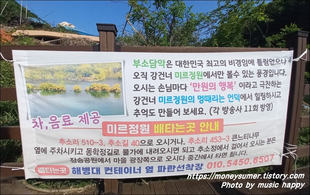 배를 타고 미르정원으로 가면 최고의 비경인 부소담악을 제대로 즐길 수가 있다 하니 이용하실 분들은 참고하세요.