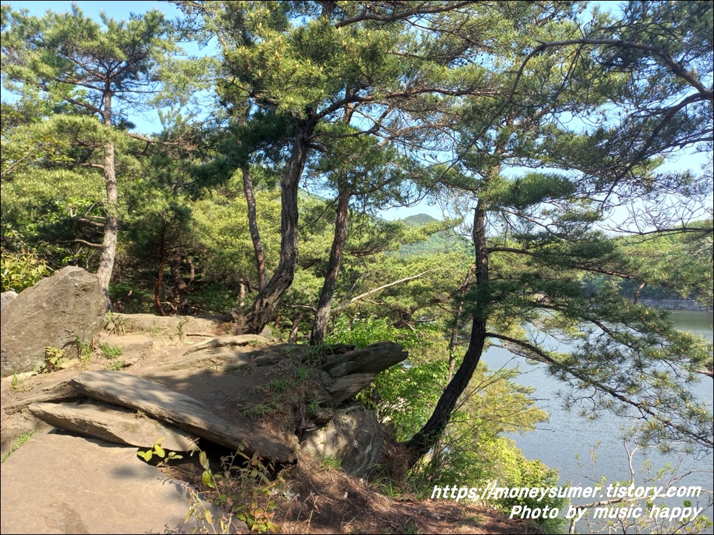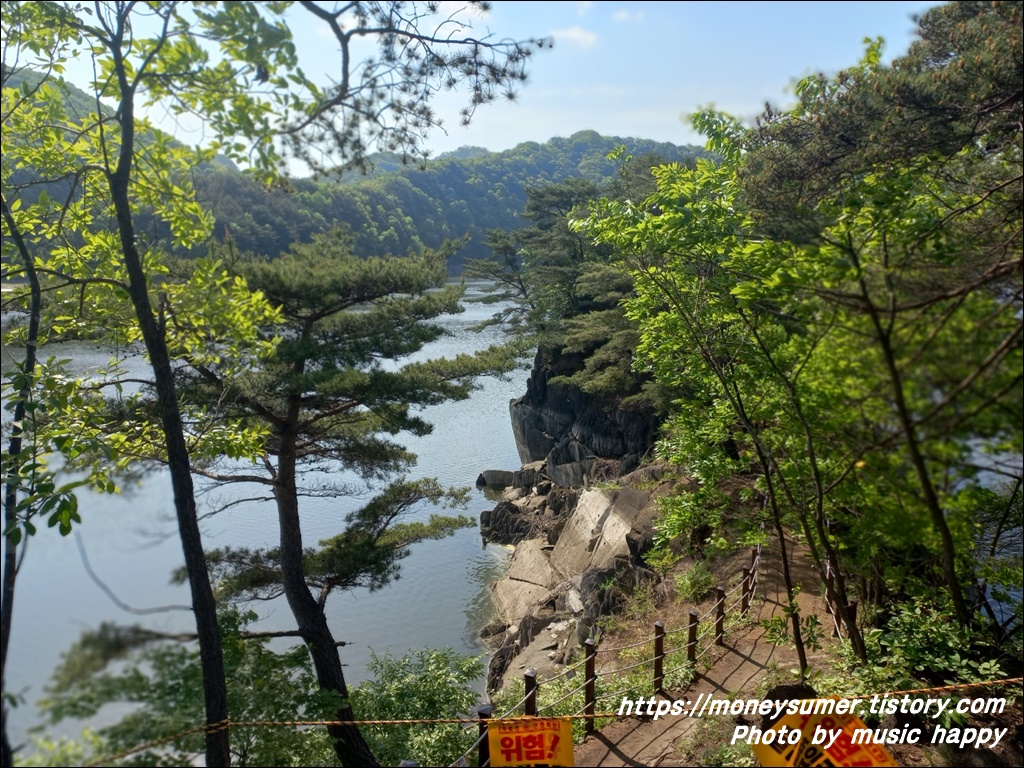 부소담악은 본래 산이었으나 대청댐 준공으로 산의 일부가 물에 잠겨 마치 물 위에 바위가 떠 있는 형상이 되었다고 하네요.