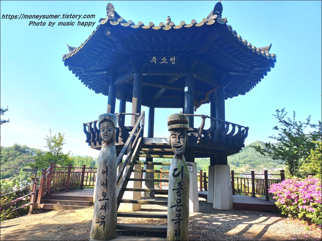 추소정이라는 정자가 있네요. 코믹스럽게 생긴 목재형상이 환영인사를 하고 있고요~