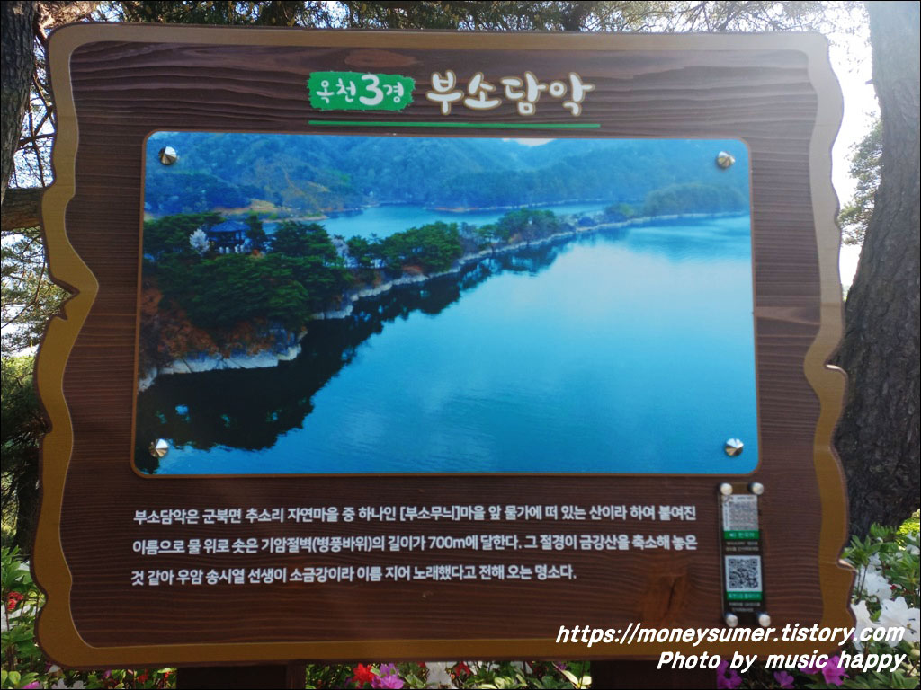 충북 옥천에 자리 잡고 있는 물 위에 떠 있는 산인 부소담악의 아름다운 경치구경을 해 보시길 추천드려 봅니다.