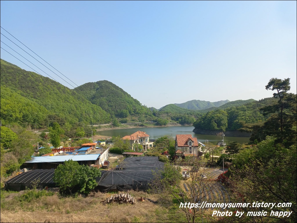 부소담악 앞에 예쁘게 지어진 전원주택이 좋아 보이네요~