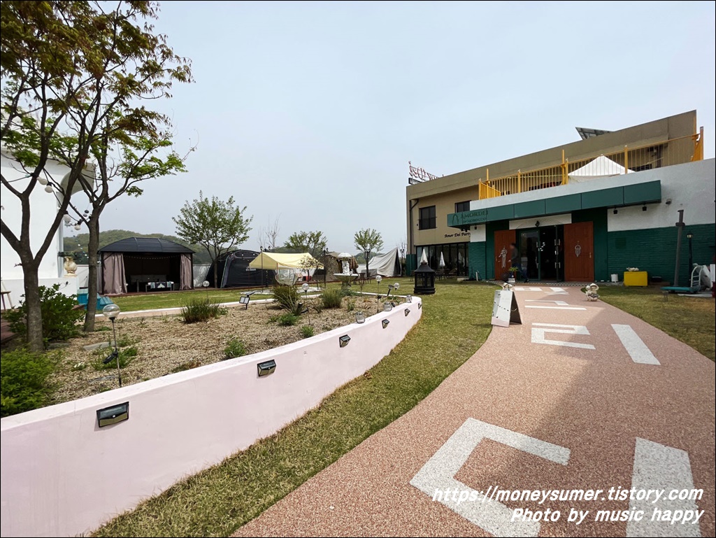 마당이 있고 야외 테이블도 있네요. 텐트도 마련되어 있어서 캠핑 감성을 느끼고 싶은 분들은 이곳을 이용해도 좋을 것 같아요. 텐트이용은 미리 네이버예약을 해야 하네요.