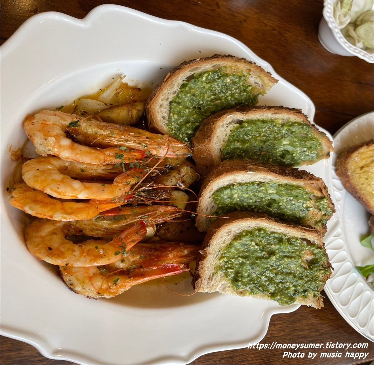 짝지가 주문한 감바스(16,000원)이에요. 통통한 새우살이 쫄깃하면서 담백하니 너무 맛있어요