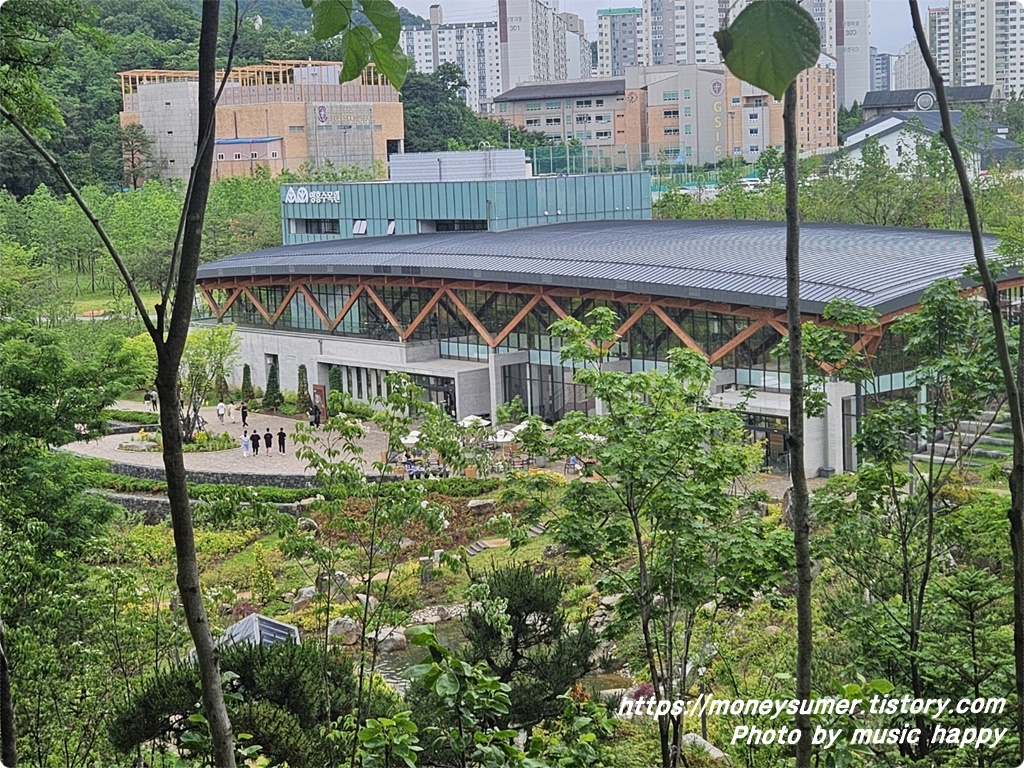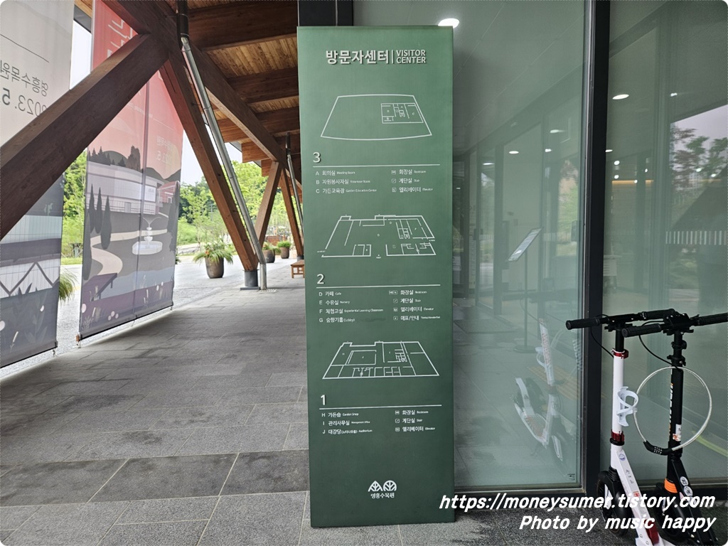 아름답게 꾸며진 수목원의 모습을 눈에 가득 담고 주차장으로 가기 위해 방문자센터로 향했어요.