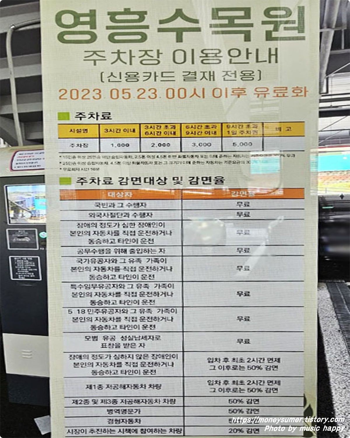 - 3시간 이내: 1,000원/ 3시간 초과 6시간 이내: 2,000원