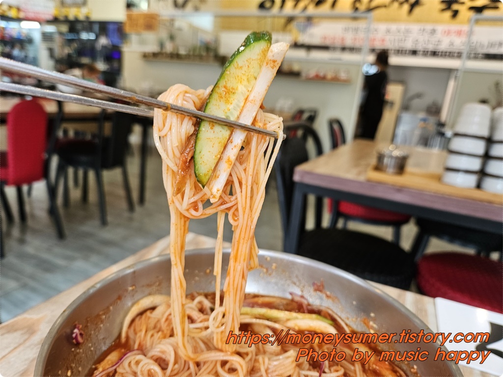 신포 비빔국수는 예전 함경도 지방에서 즐겨 먹던 국수로 각종 야채와 과일을 한 달 이상 자연 발효시킨 몸에 좋은 유산균 소스라고 하네요.