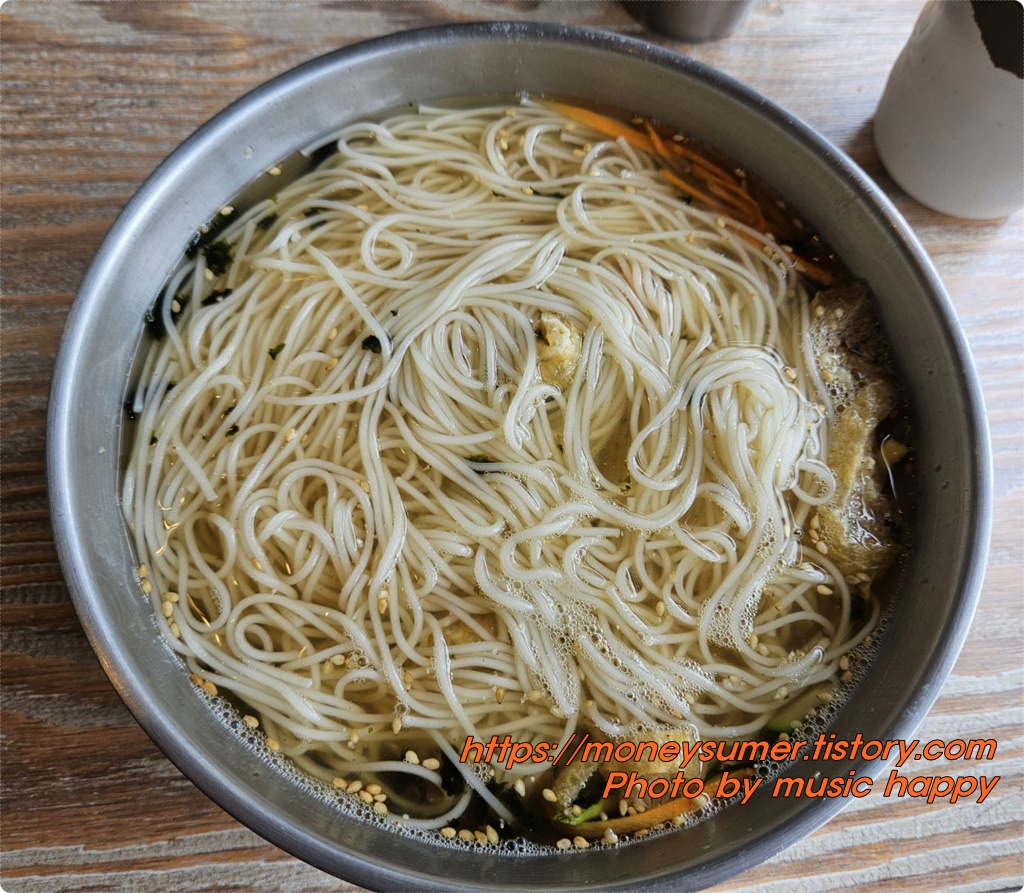 딸은 통영 앞바다 최상의 멸치와 완도 다시마 그리고 각종 야채를 푹 우려낸 진한 육수로 만든 잔치국수(7,500원)를 주문했어요.
