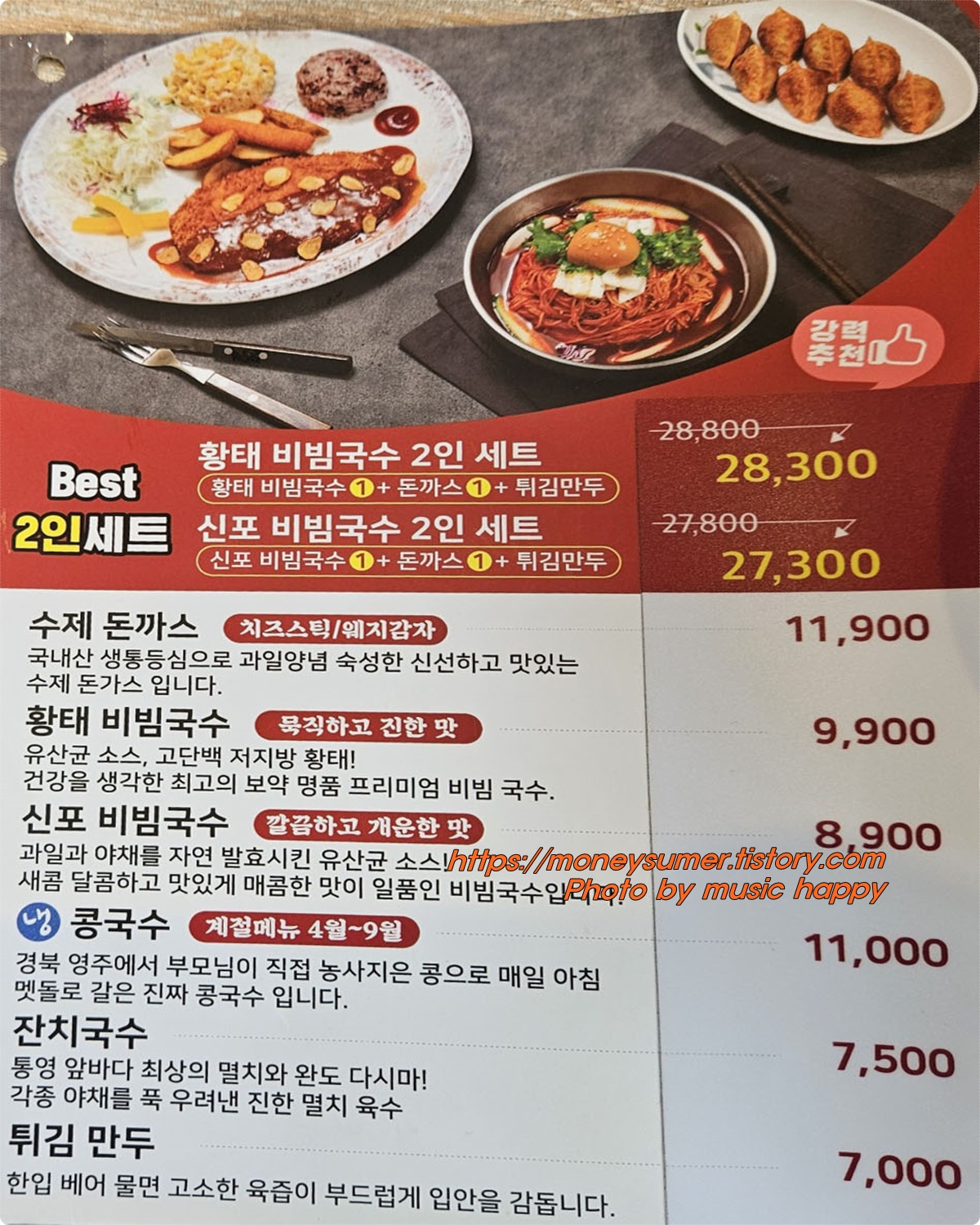 가격대는 조금 비싸긴 하지만 평범한 국수에 특별한 재료들이 들어간 신포국수에서 식사해 보시길 추천드려 봅니다.