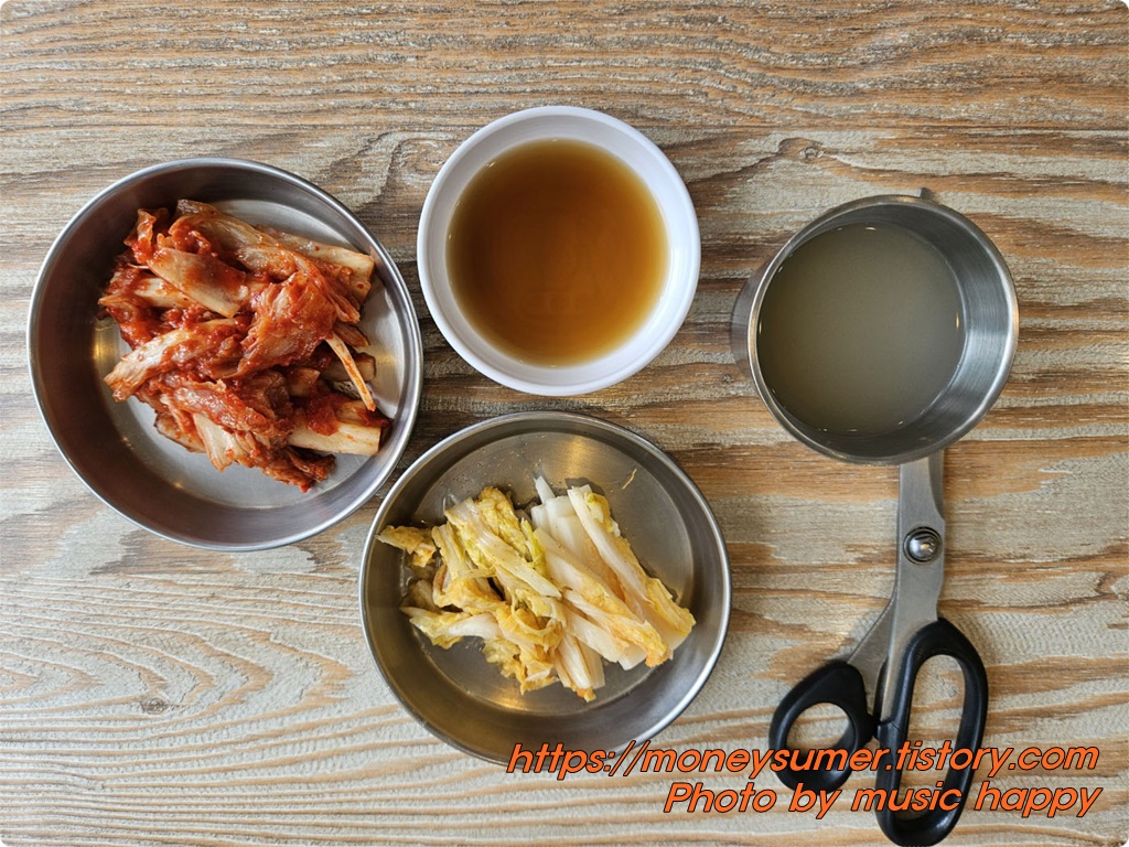 육수에 각종 야채가 들어갔다고 하는데 실제 눈으로 보이는 야채는 별로 없어서 식감을 느끼기 위해서는 김치가 필수로 필요하네요.