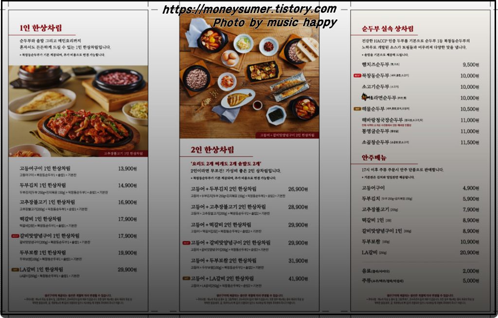 <북창동순두부 범계점 메뉴>