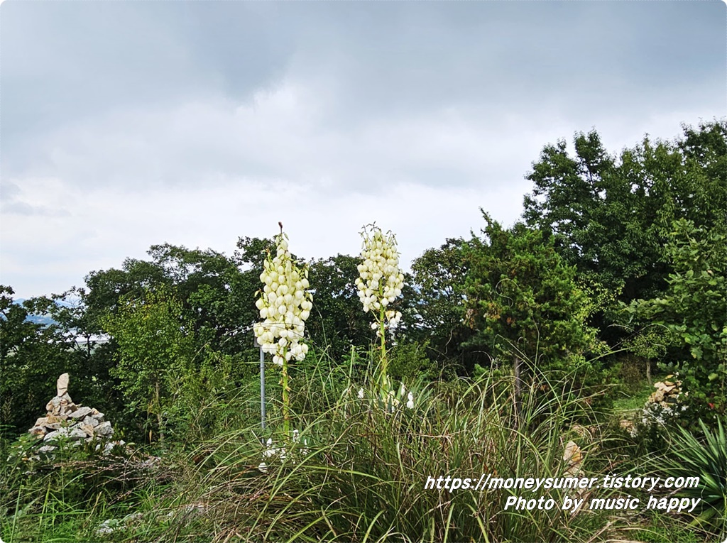 신기하게 생긴 유카라는 꽃이 여러 군데에 피어있네요.