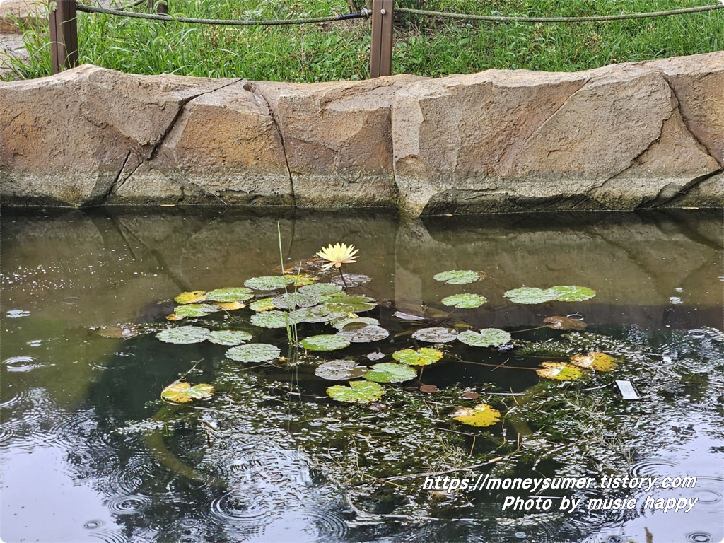 비가 오는 연못에 피어있는 수련과 꽃범의 꼬리라는 특이한 이름을 가진 꽃도 감상했어요.