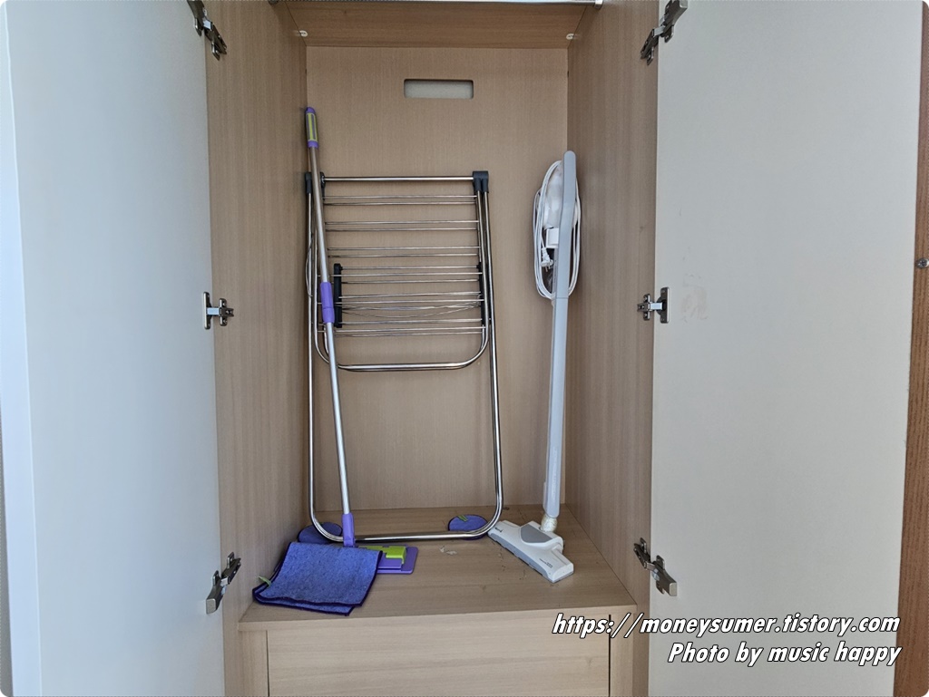 옷장에는 옷걸이와 건조대도 있답니다. 옷걸이가 없는 숙소는 옷을 걸어둘 데가 마땅지 않아서 불편한데 이곳은 옷걸이가 많이 있어서 편하더라고요.