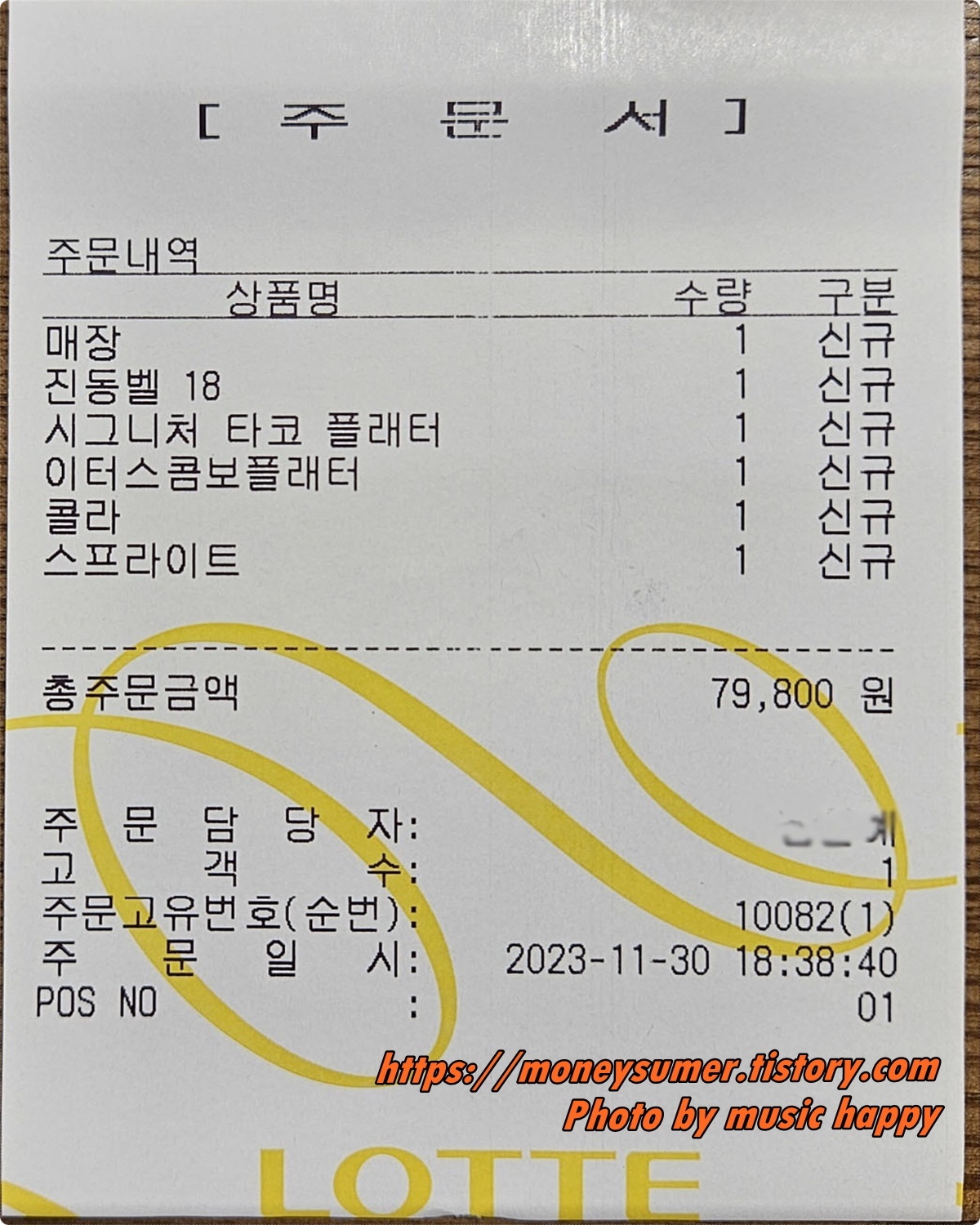 저희는 시그니처 타코 플래터(37,900원), 이터스 콤보 플래터(36,900원), 탄산음료(4캔: 10,000원)를 주문했어요.