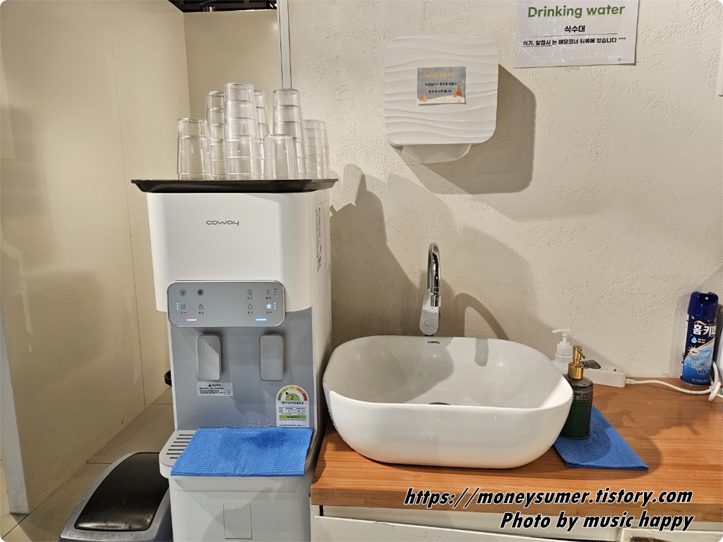정수기옆에 세면대가 있어서 굳이 화장실에 안 가고도 손을 씻을 수 있어서 편했어요.