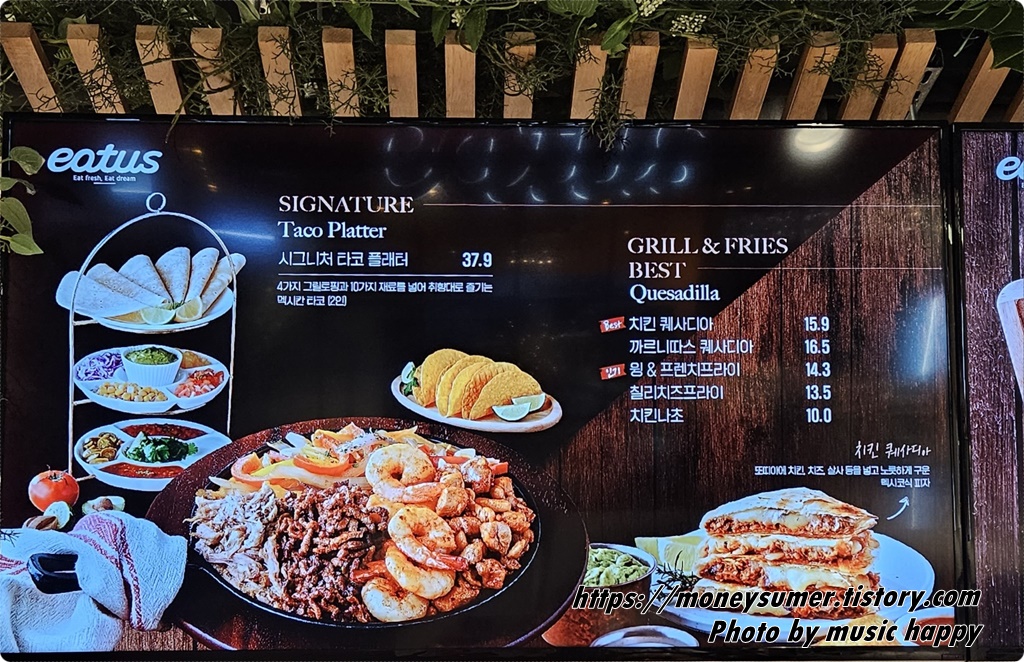 가족행사가 있어서 저녁외식을 했어요. 아들이 타코를 먹고 싶다고 해서 롯데프리미엄아울렛 타임빌라스 내에 자리 잡고 있는 이터스에 방문했어요.