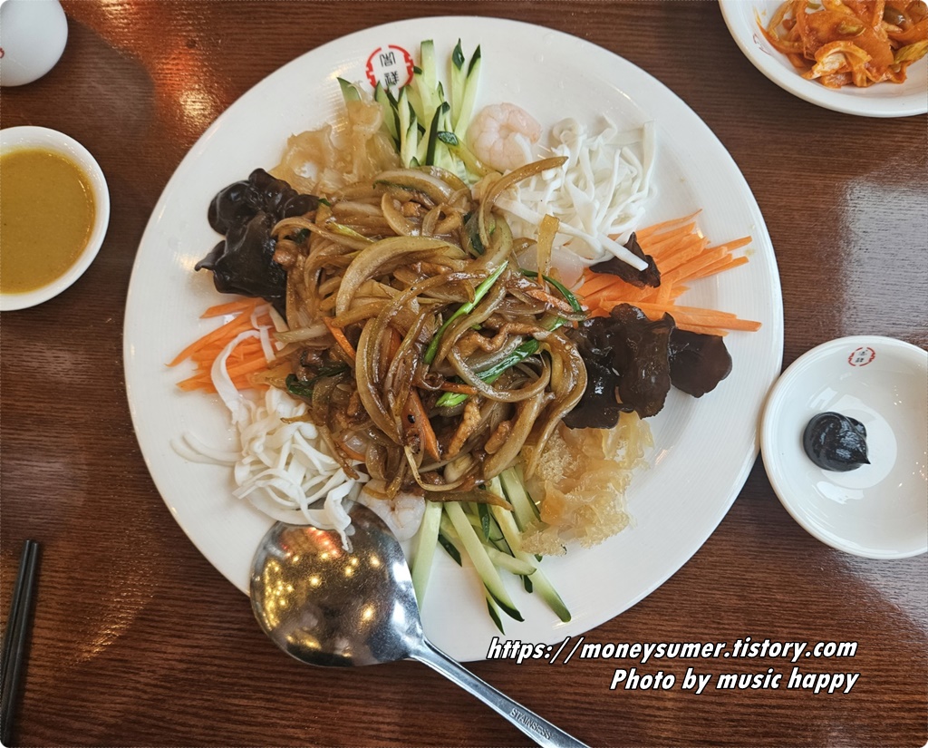 처음에는 양장피가 나왔는데 짝지가 글쎄 함께 나온 겨자소스를 다 부어버렸지 뭐예요~ㅠ