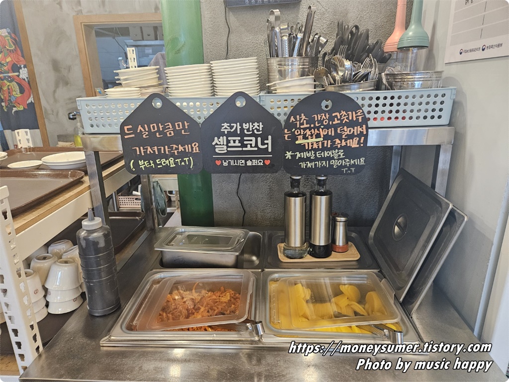 처음 반찬은 직원분이 주시고 그다음부터는 셀프랍니다.