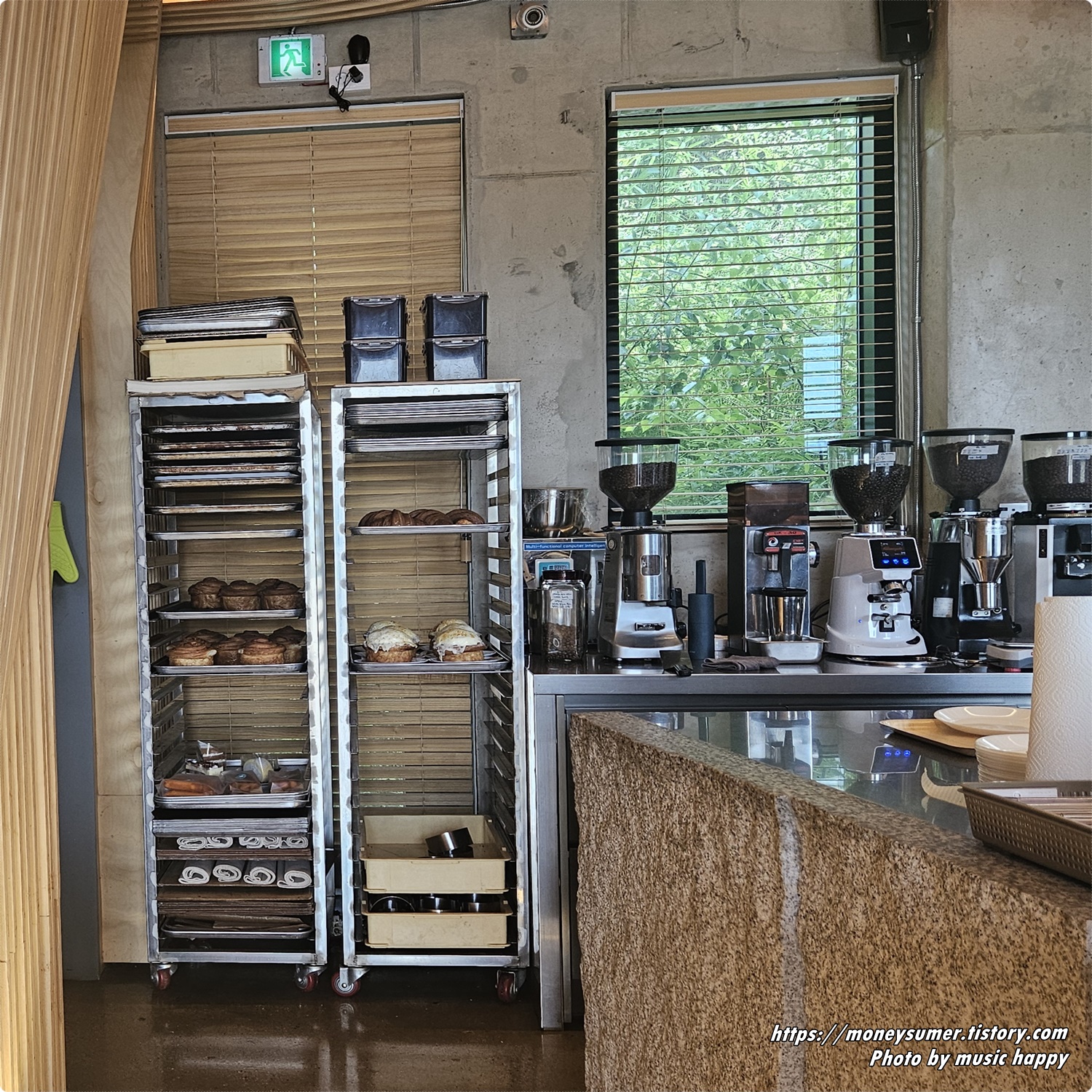 저희는 2층에서 커피와 빵을 즐겼어요. 3층은 바깥풍경이 거의 보이지 않아서 답답한 부분이 있더라고요.