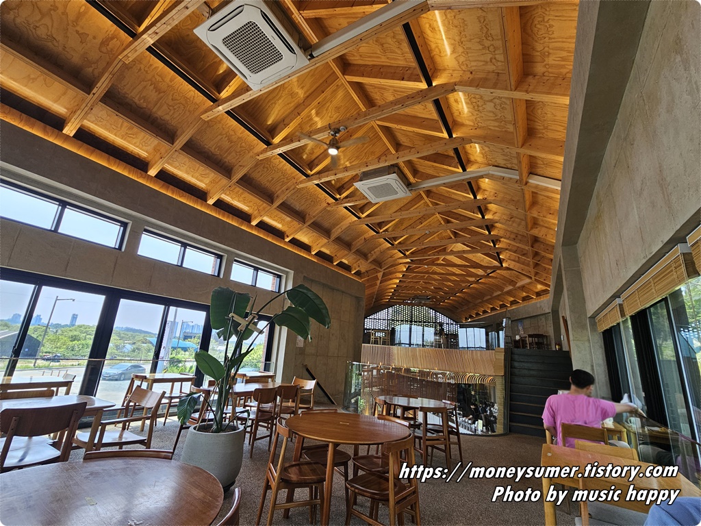 3층까지 테이블이 마련되어 있어요. 우드로 꾸며진 곳이라 여름에는 시원하고 겨울에는 따뜻한 느낌이 들 것 같아요.