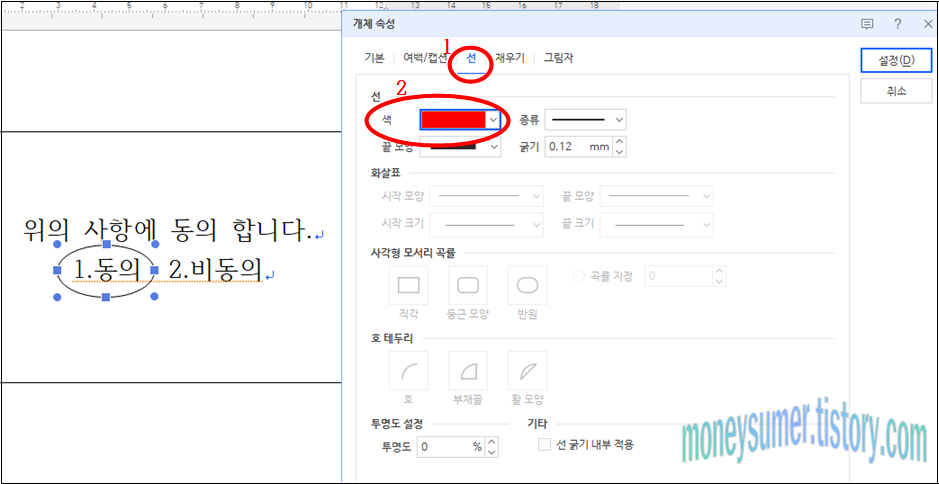 한글파일에서 동의하는 사항에 대해 동그라미를 표시해야 할 상황이 생길 경우 어떻게 해야 하는지를 알려드리도록 하겠습니다.