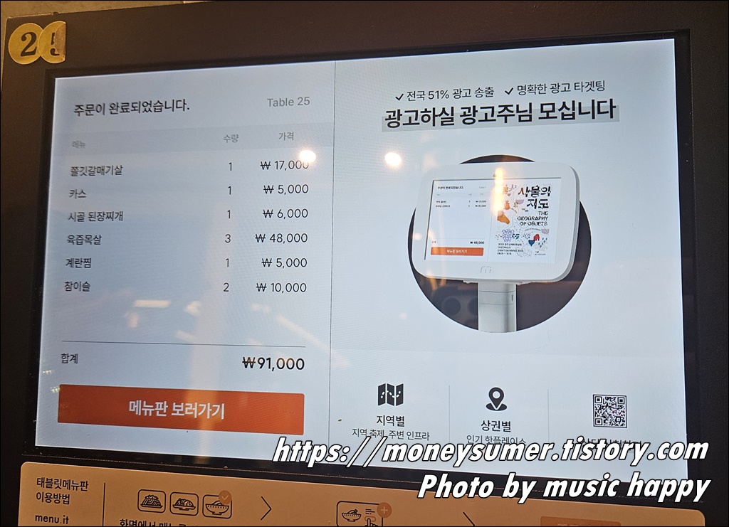 테이블마다 태블릿이 놓여 있어서 이곳에서 메뉴 주문을 하시면 된답니다.