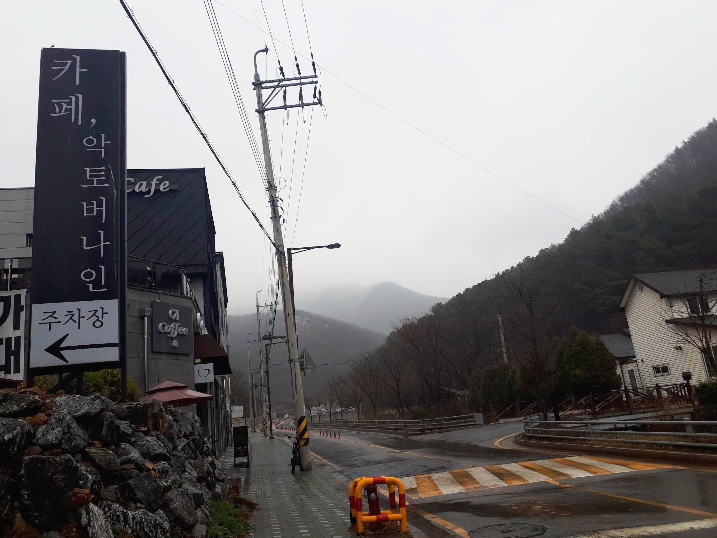 주차를 하고 건물 현수막에 카페 악토버나인 입구라고 씌여있는 곳으로 계단을 통해 내려가서 카페에 들어갔어요. 내려가는 도중 비를 맞아서 사진은 미처 찍지를 못했네요. 아쉽게~(┬┬﹏┬┬)