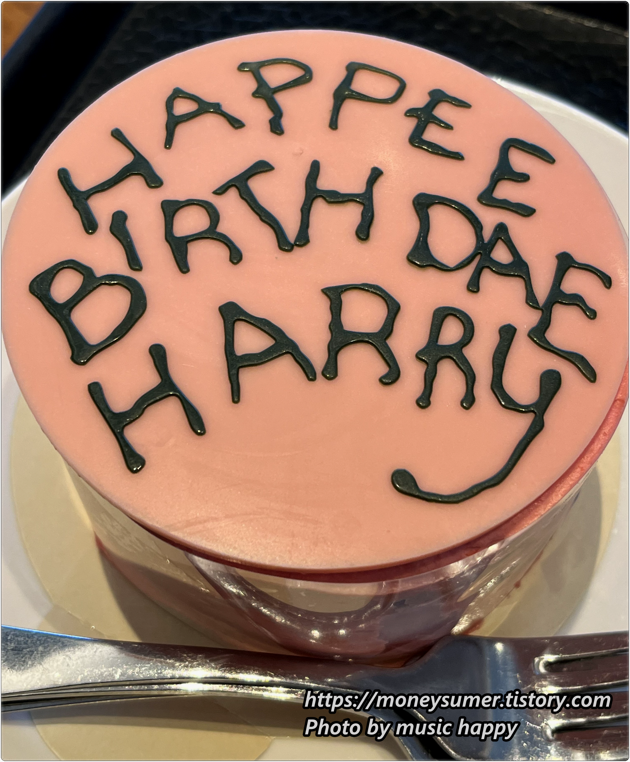 생일은 아니지만 딸을 위해 특별히 딸바보 아빠가 사준 해피버스데이 해리 케이크예요.
