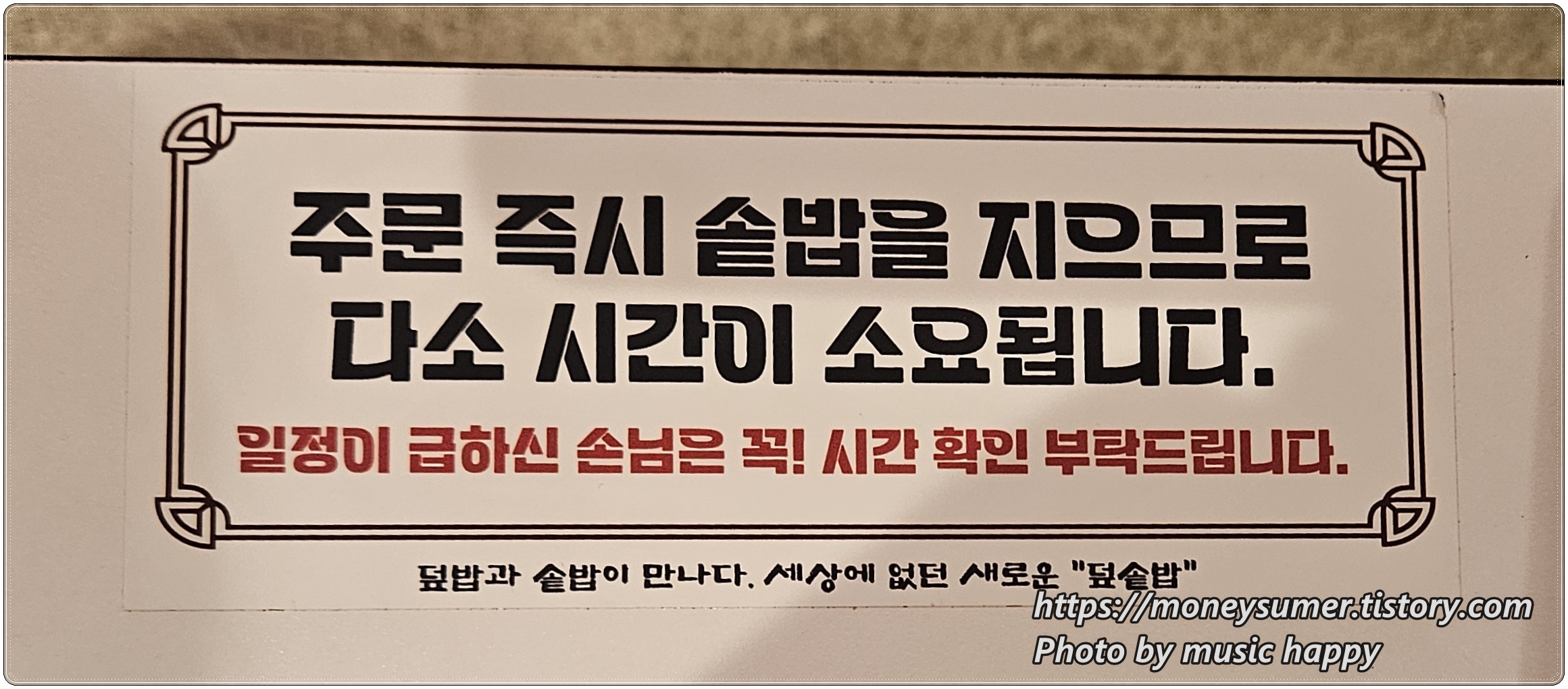 주문 즉시 솥밥을 짓기 때문에 시간이 걸리는 걸 감안하셔야 해요