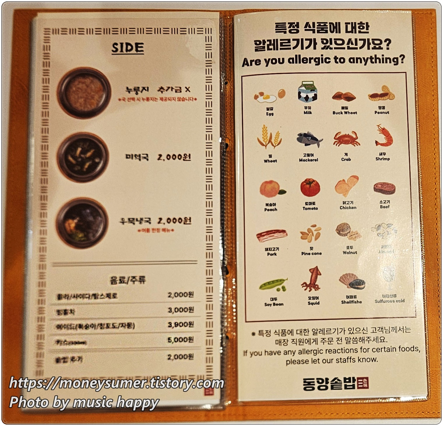 특정 알레르기가 있으신 분은 주문 전 미리 직원에게 말씀하시는 걸 잊지 마세요