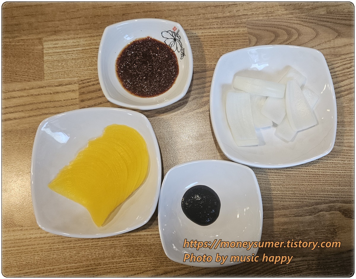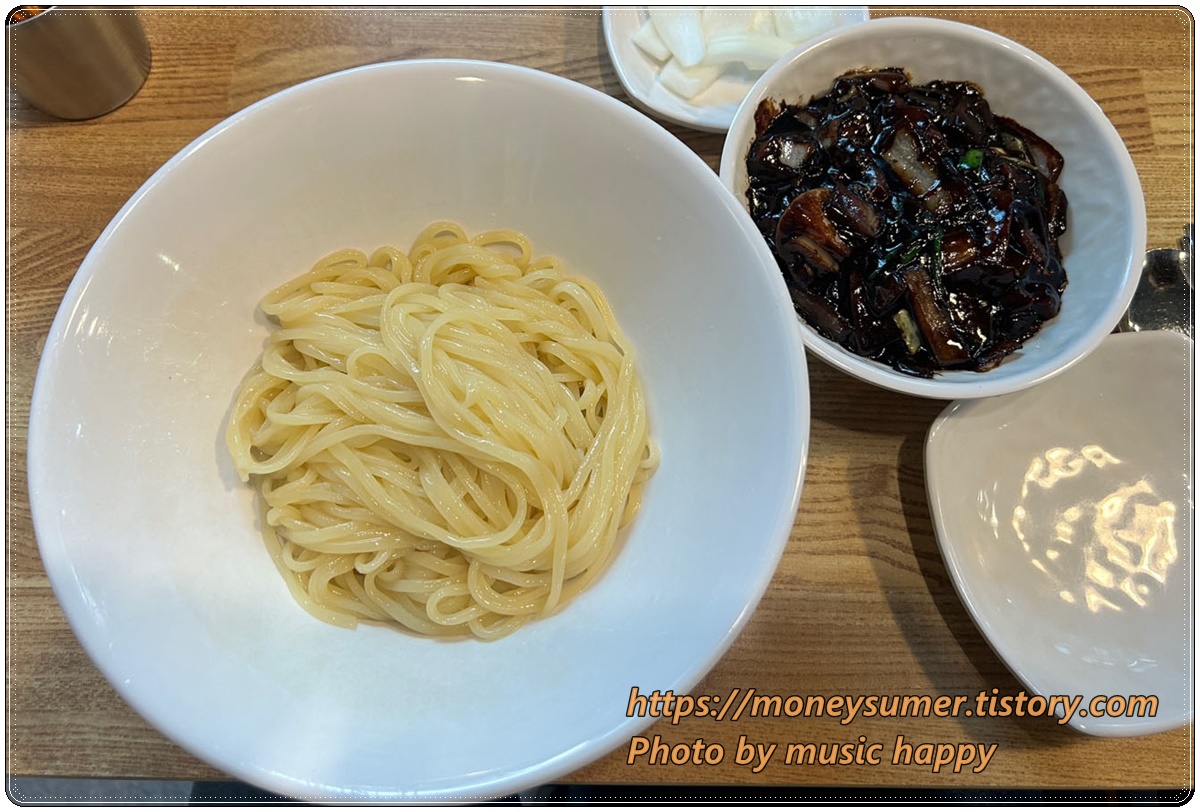 주문을 한 후 기본으로 세팅된 단무지, 양파, 춘장 그리고 간장소스예요.