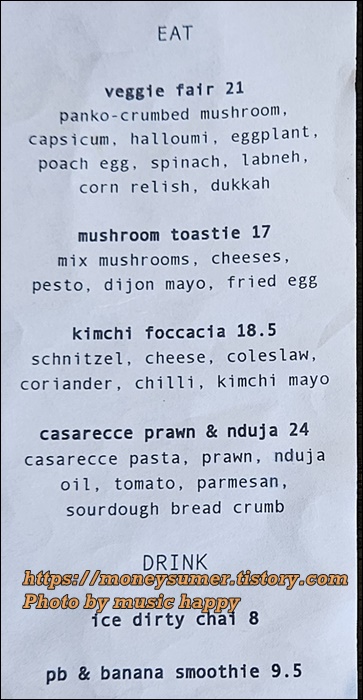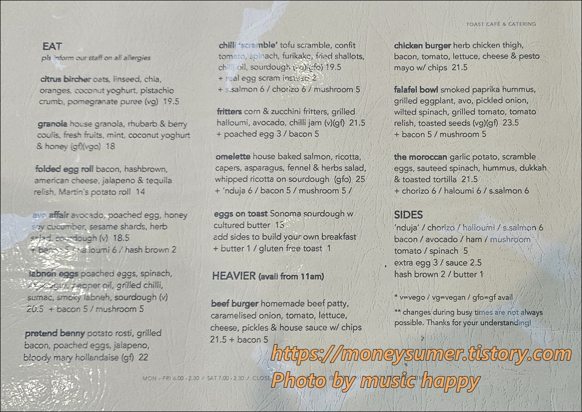 <호주 토스트 카페 메뉴>
