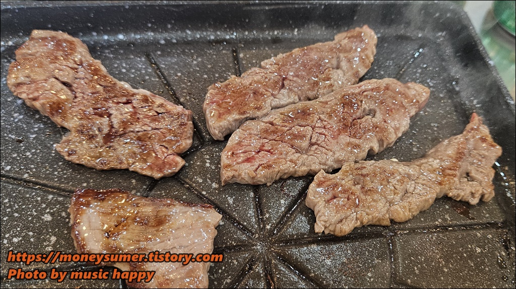 먹음직스러운 소고기가 익어가는 소리가 너무 듣기 좋아요