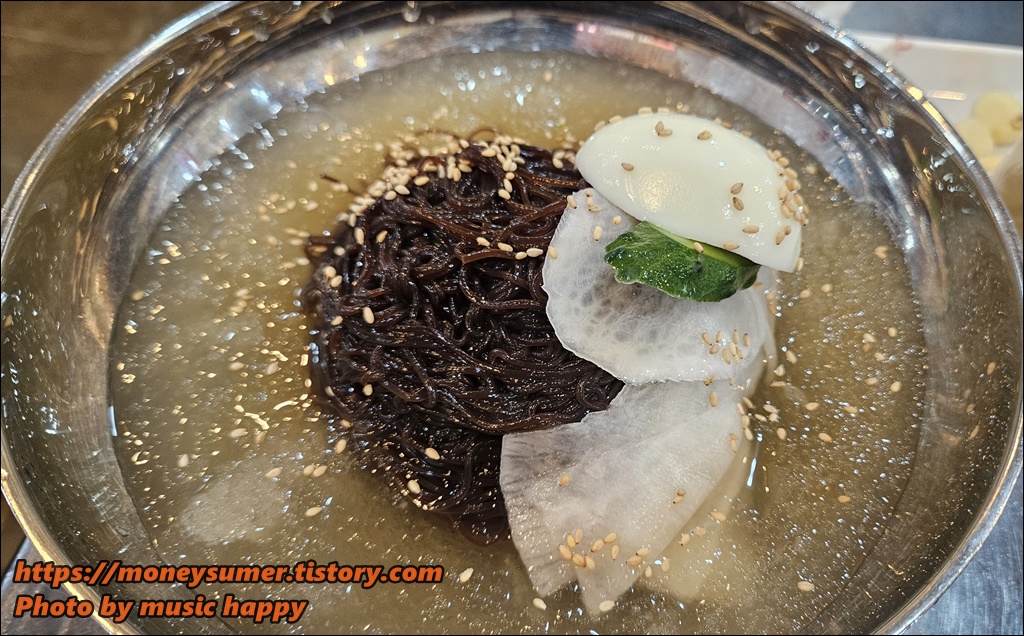 물냉면(6,000원)도 먹고 싶어서 주문했는데 쫄깃한 면발이 시원한 국물과 함께 어우러져 맛이 좋아요