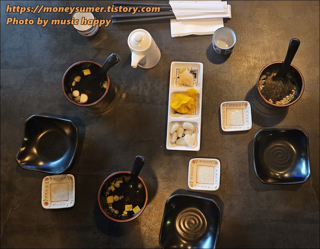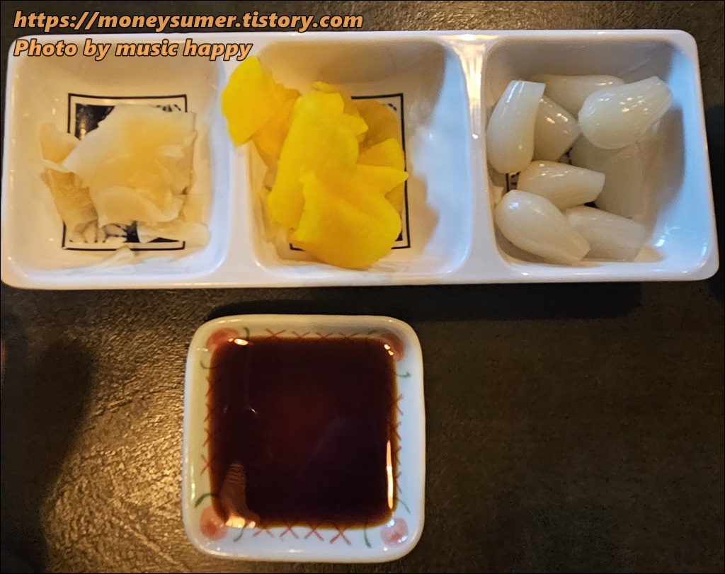 생강초절임, 단무지, 락교, 미소국이 기본으로 나왔고요