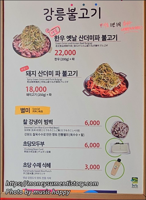 <강릉불고기 초당점 메뉴>