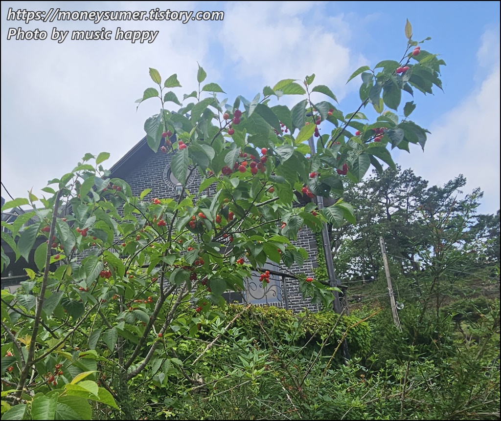 체리나무에는 체리도 빨갛게 익어서 예뻐 보이더라고요
