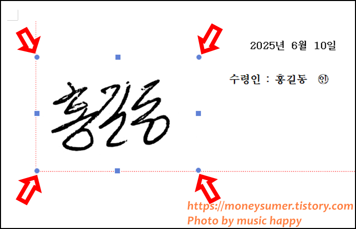 8. 적당하게 크기가 줄여졌으면 서명란으로 이동시킵니다.