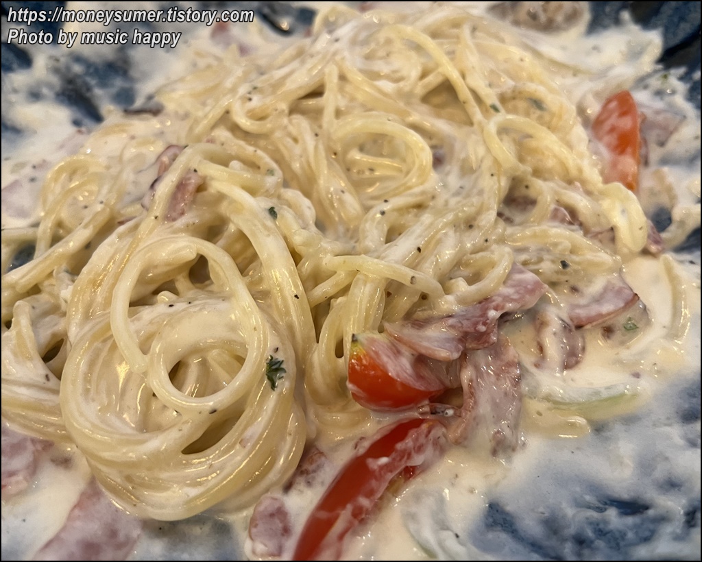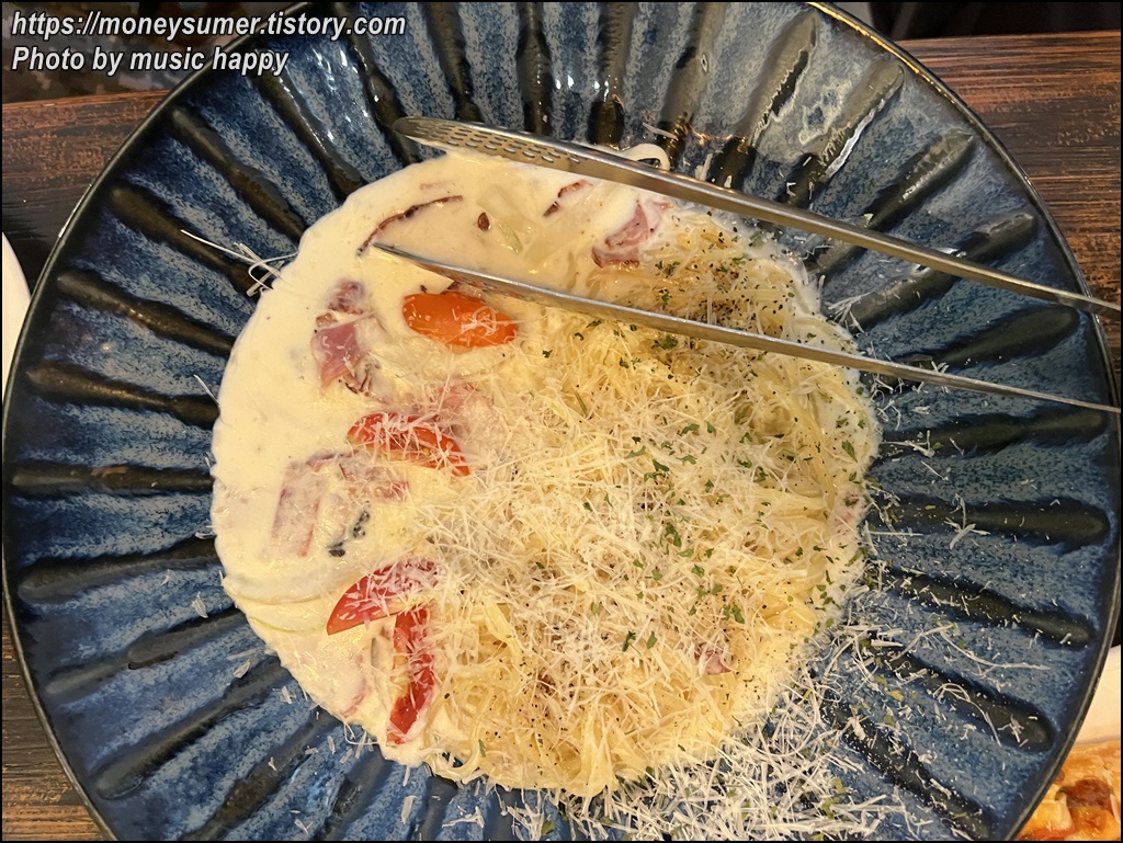 쫄깃한 면발에 적당한 간의 크림소스라 너무 맛있어요.